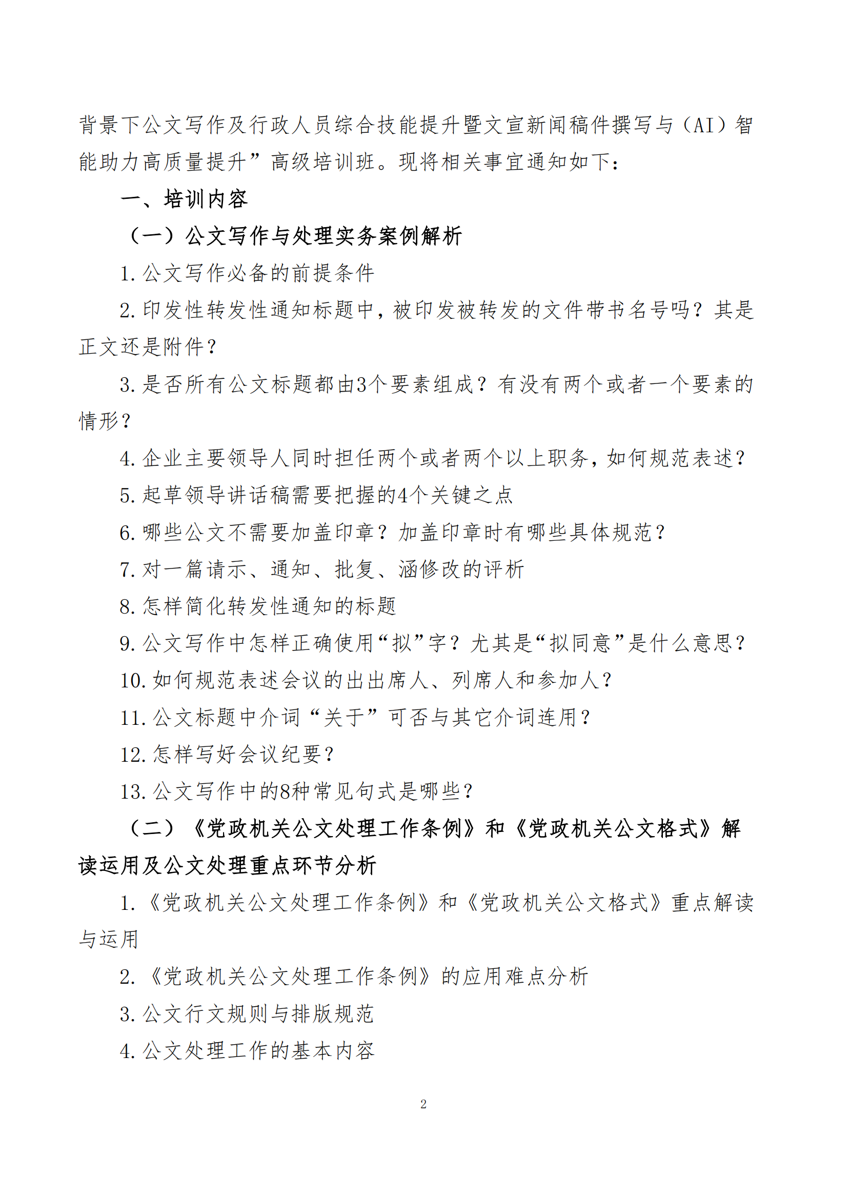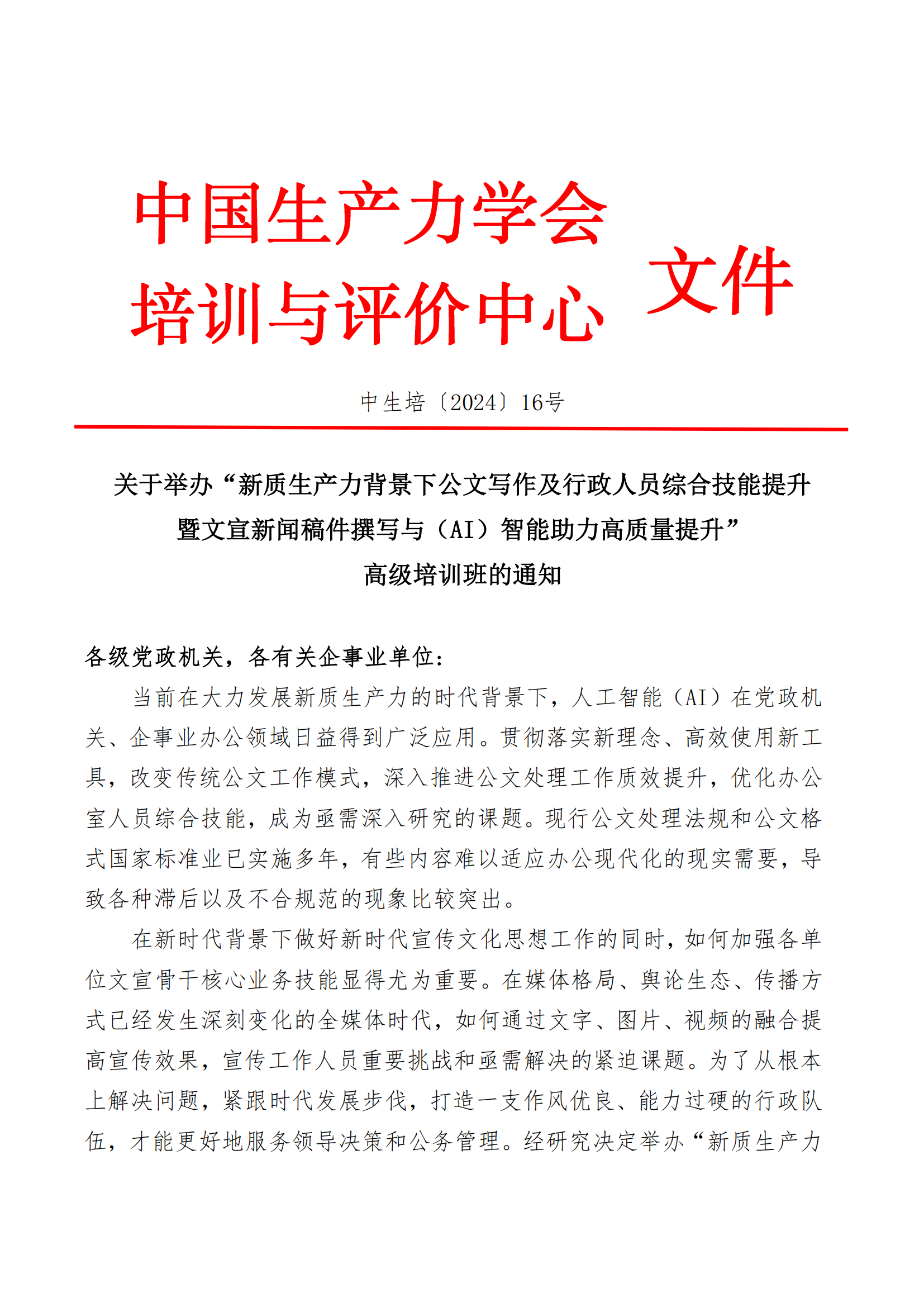 ”新质生产力背景下公文写作及行政人员综合技能提升暨文宣新闻稿件撰写与(AI)智能助力高质量提升”高级培训班
