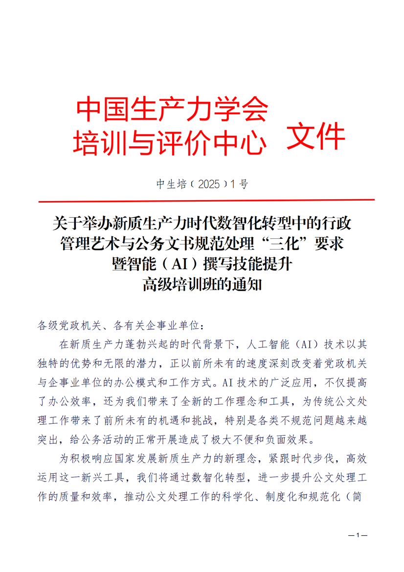 新质生产力时代数智化转型中的行政管理艺术与公务文书规范处理“三化”要求曁智能(AI)撰写技能提升高级培训班