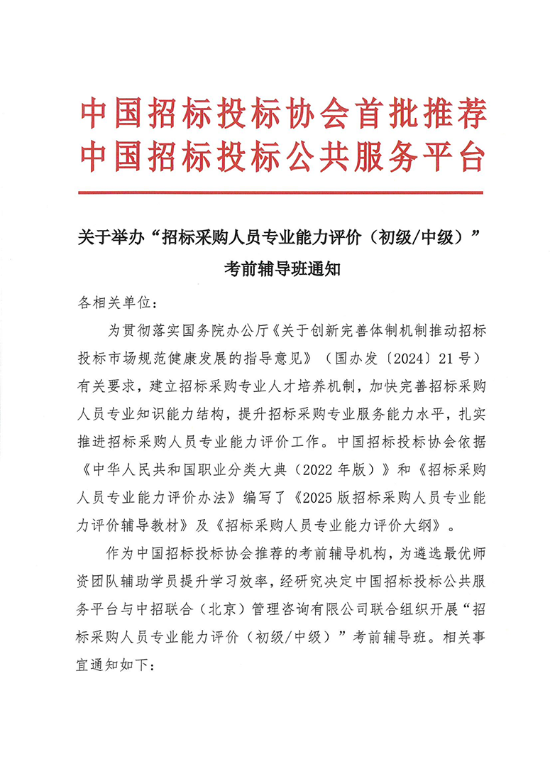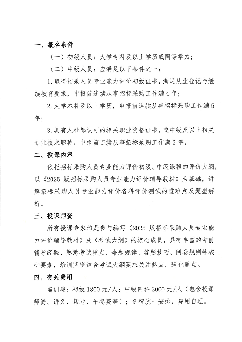 “招标采购人员专业能力评价(初级/中级)”考前辅导班