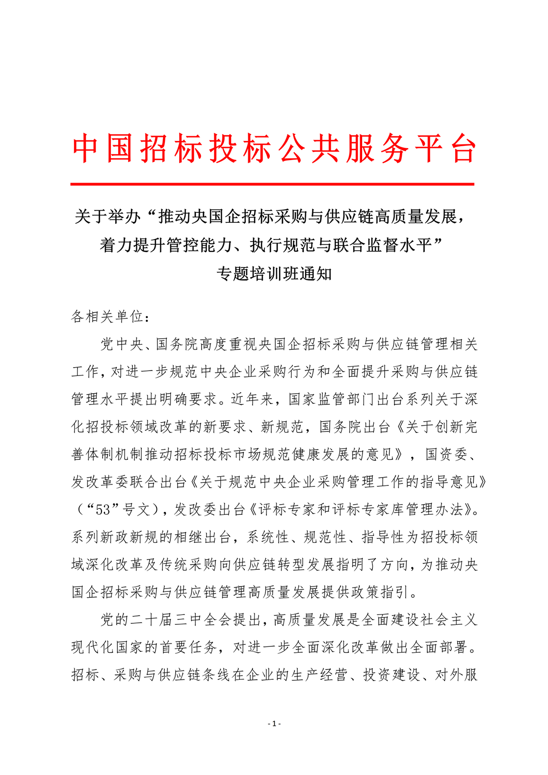 “推动央国企招标采购与供应链高质量发展,着力提升管控能力、执行规范与联合监督水平”专题培训班
