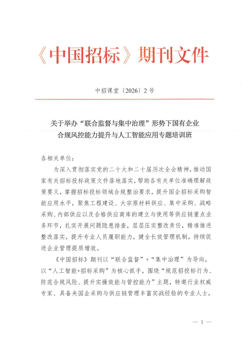 “联合监督与集中治理”形势下国有企业合规风控能力提升与人工智能应用专题培训班