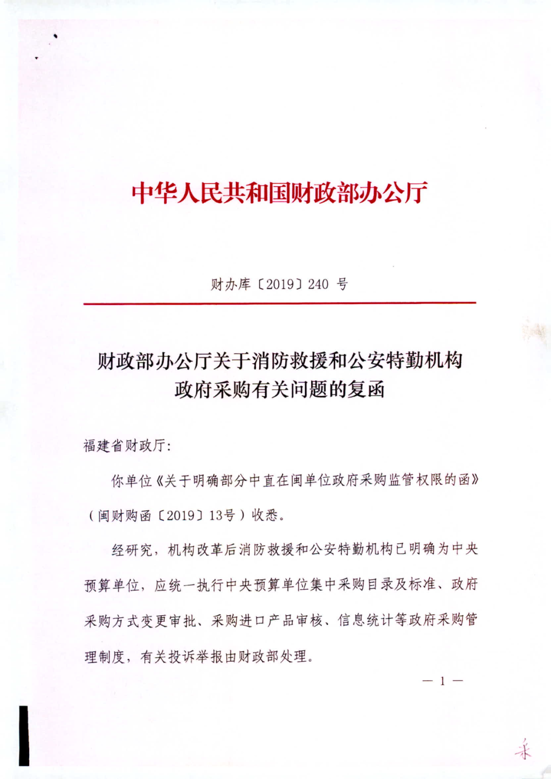 日前,财政部办公厅作出《关于明确中央驻琼预算单位政府采购监管权限的复函》(财办库〔2020〕16号)、《关于消防救援和公安特勤机构政府采购有关问题的复函》(财办库〔2019〕240号)两个复函,就海南省财政厅、福建省财政厅相关函件中的咨询事宜予以明确。