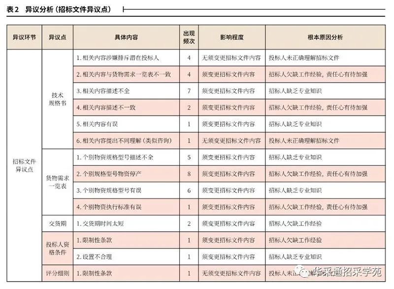 针对异议中遇到的问题,需及时总结经验,有些问题可通过完善招标方案或者招标文件模板加以解决。
