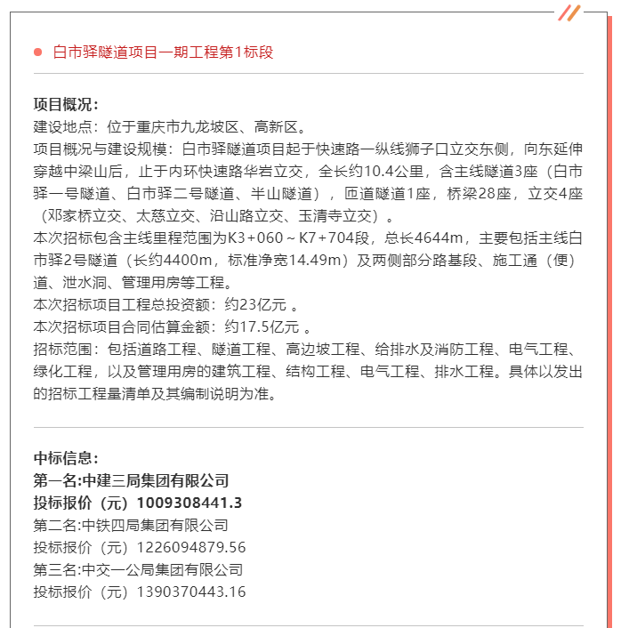 项目名称:白市驿隧道项目一期工程第1标段