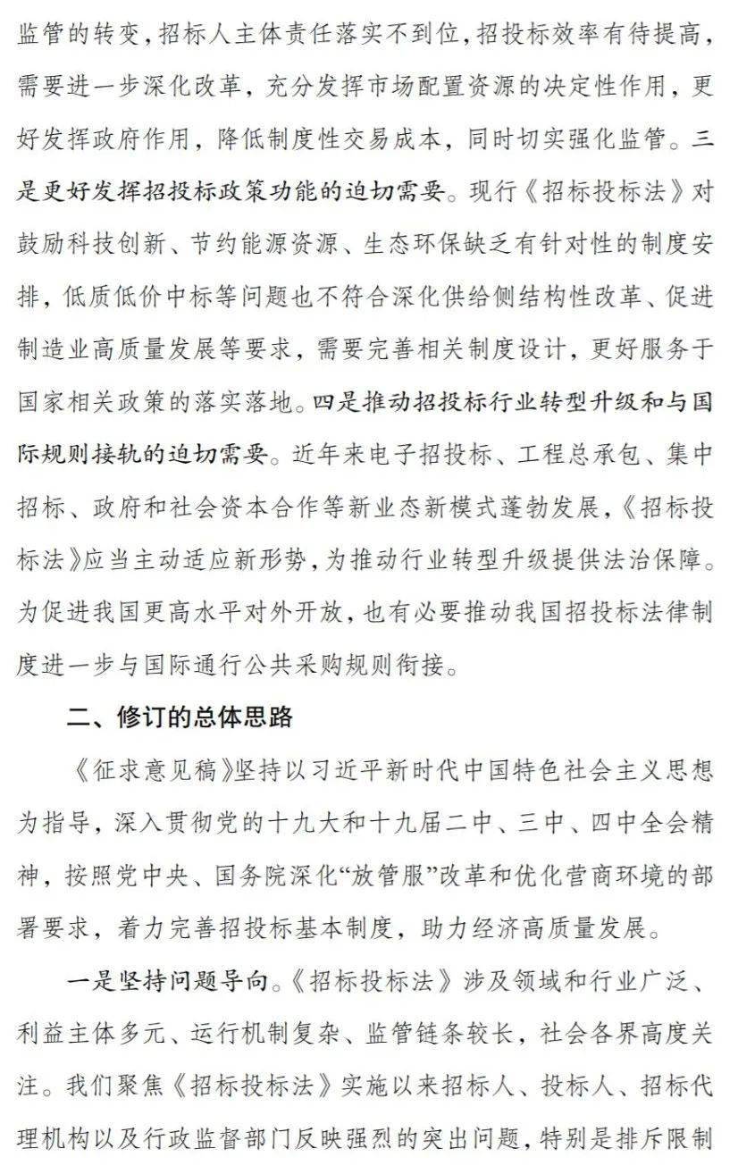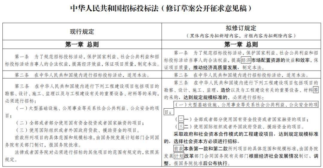 此次发布的 《中华人民共和国招标投标法(修订草案公开征求意见稿)》明确:
