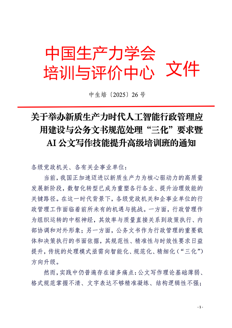 新质生产力时代人工智能行政管理应用建设与公务文书规范处理“三化”要求暨AI公文写作技能提升高级培训班