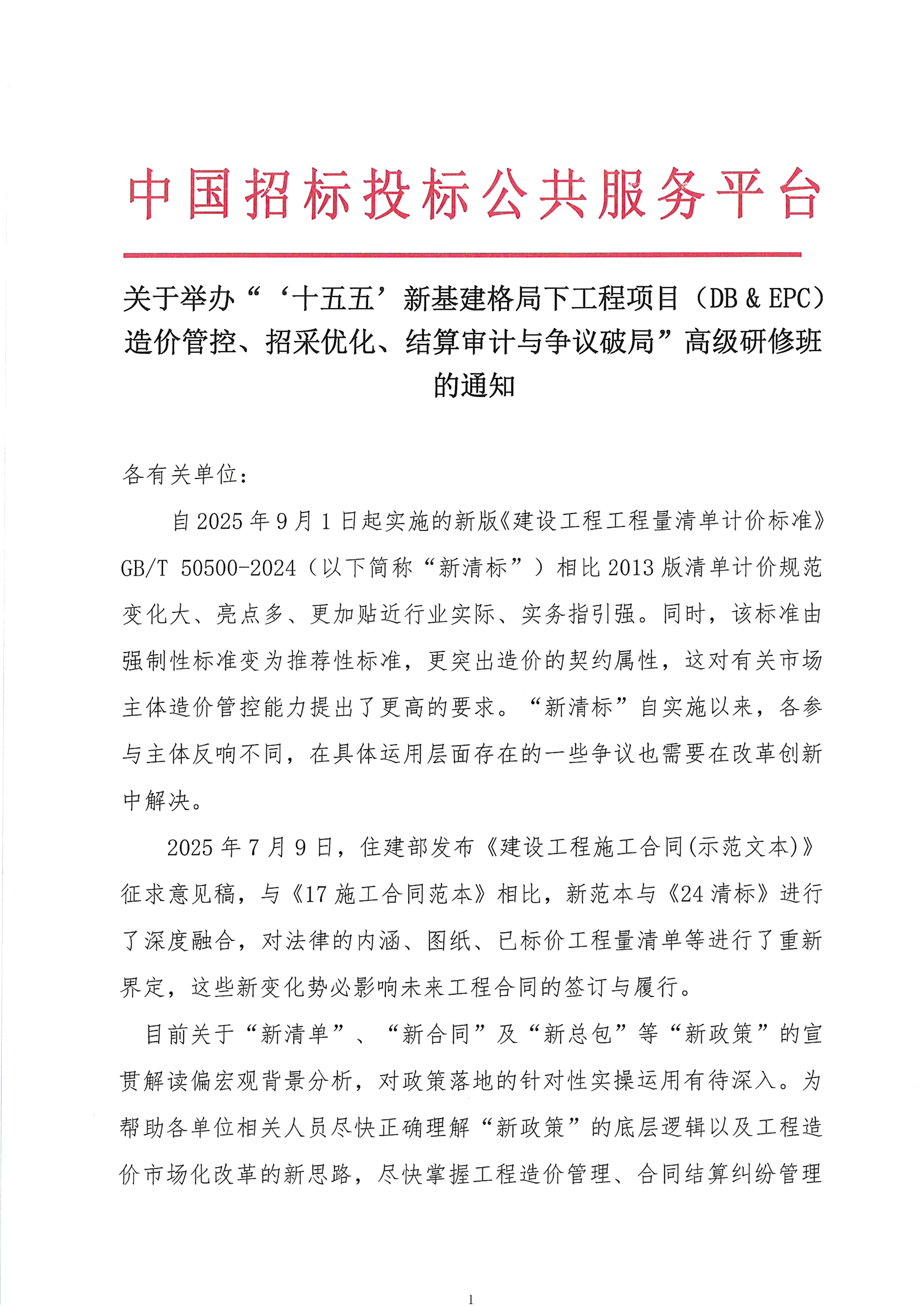 “十五五”新基建格局下工程项目(DB & EPC)造价管控、招采优化、结算审计与争议破局高级研修班