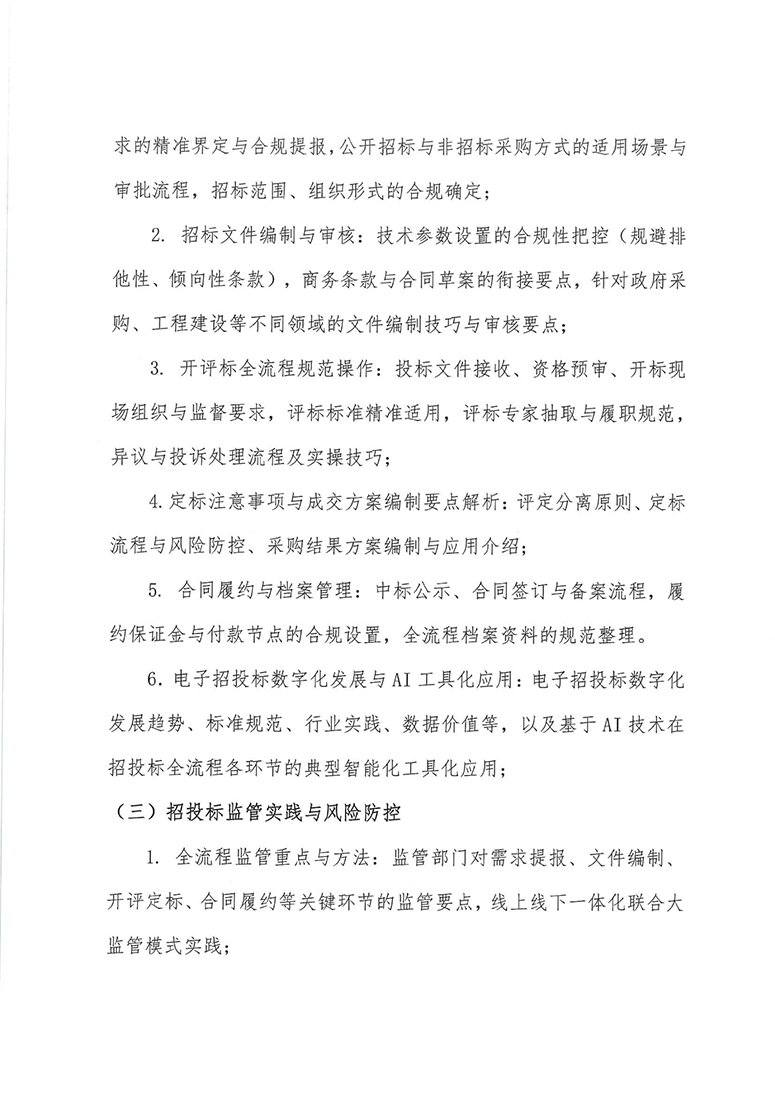 “规范操作、排查风险、筑牢防线、落实整改”暨落实《招标人主体责任履行指引》与系统提升招标采购实战能力培训班