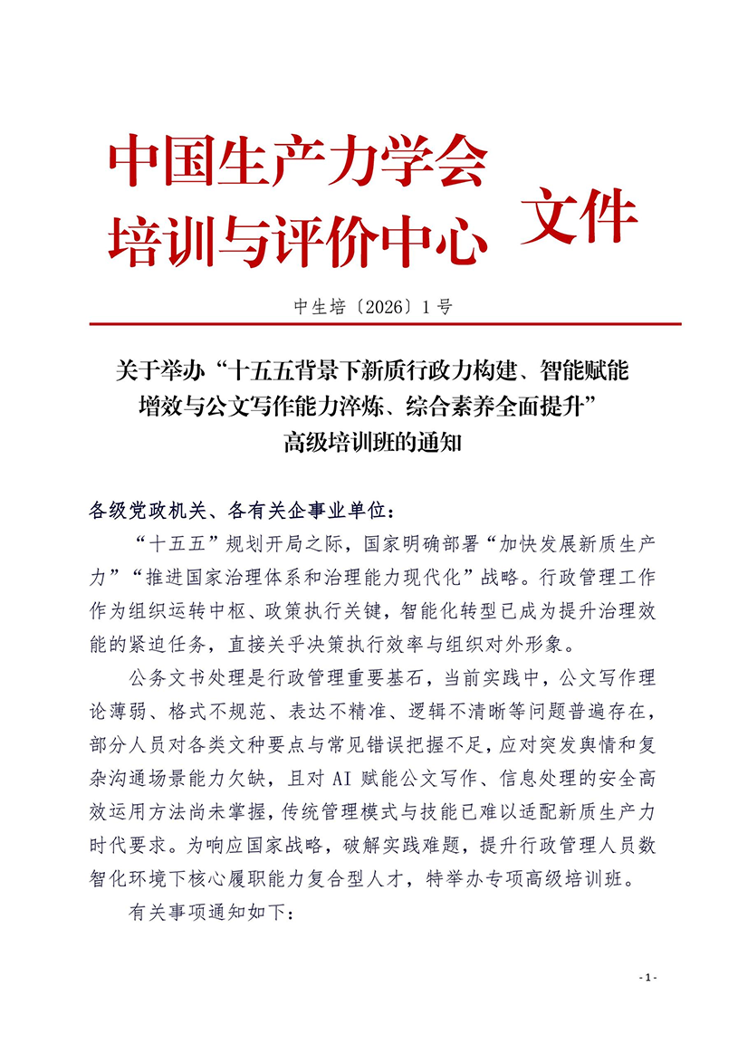 “十五五背景下新质行政力构建、智能赋能增效与公文写作能力淬炼、综合素养全面提升”高级培训班