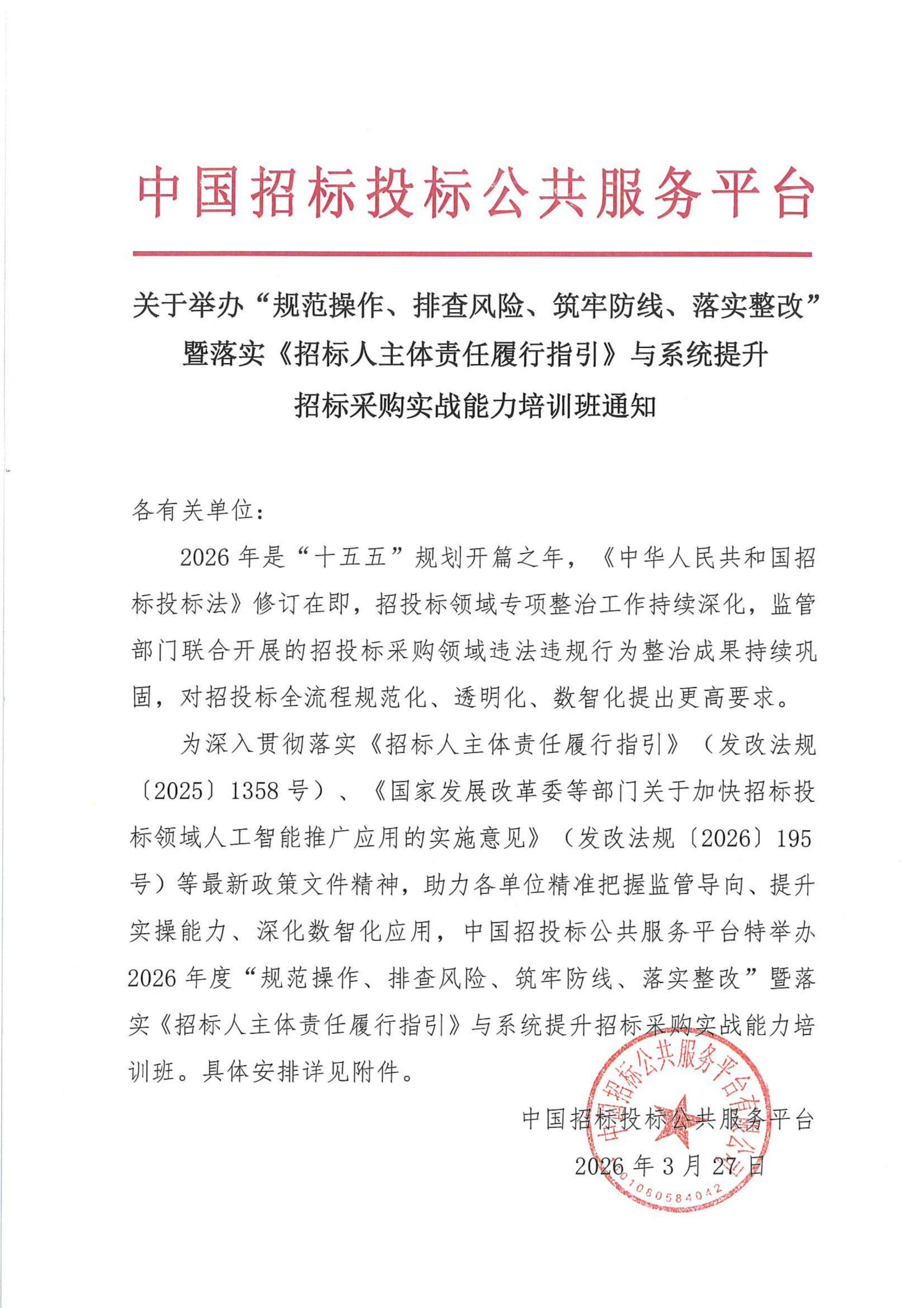 “规范操作、排查风险、筑牢防线、落实整改”暨落实《招标人主体责任履行指引》与系统提升招标采购实战能力培训班