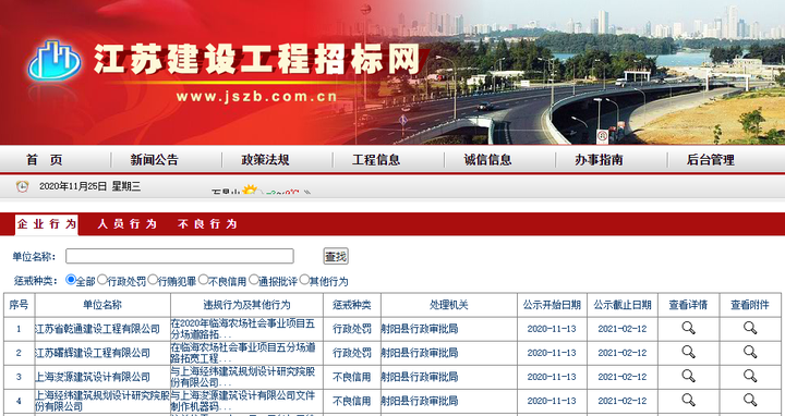 前不久,江苏建设工程招标网一天连发四条关于串标的处罚公告,涉及江苏省乾通建设工程有限公司、江苏曙辉建设工程有限公司、上海浚源建筑设计有限公司、上海经纬建筑规划设计研究院股份有限公司。