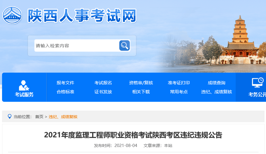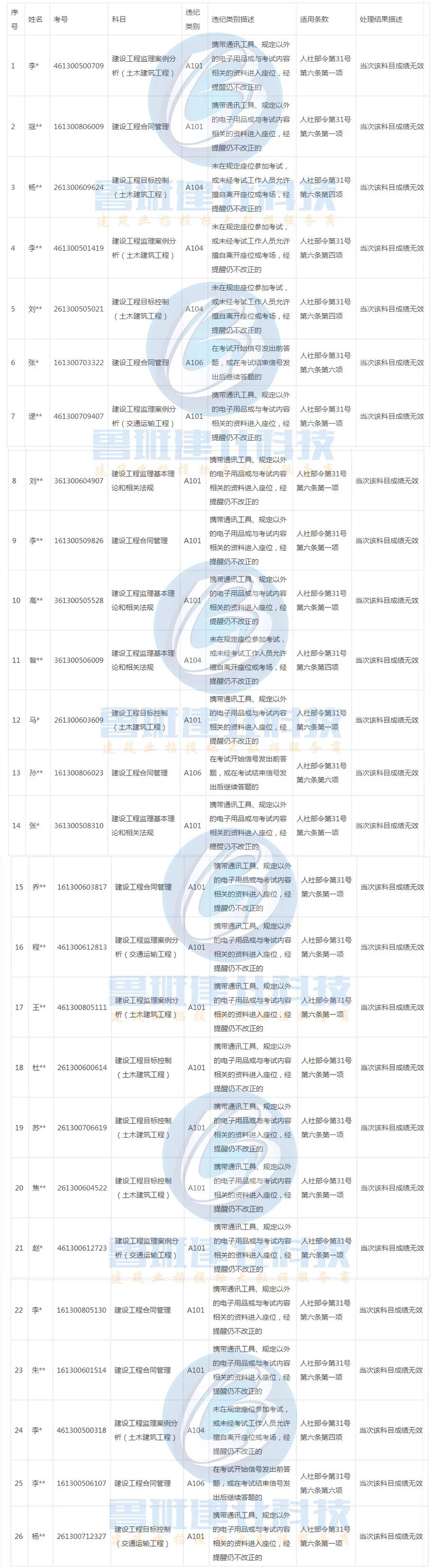 近日,陕西人事考试网发布公告, 26人在监理资格考试中违纪违规,当次该科目成绩无效。